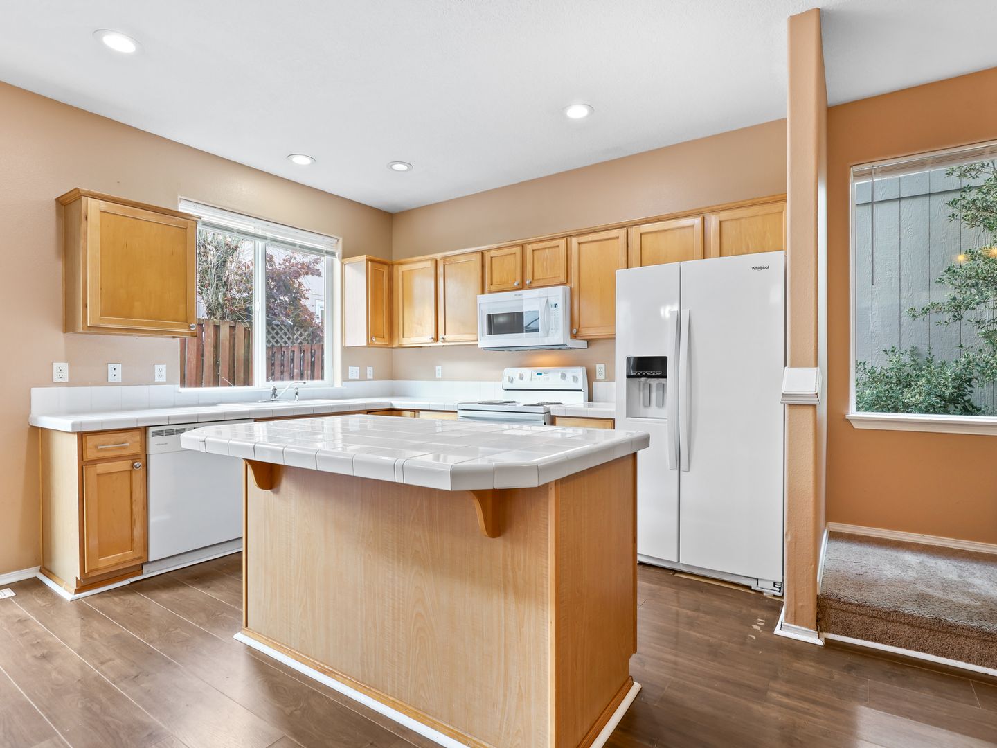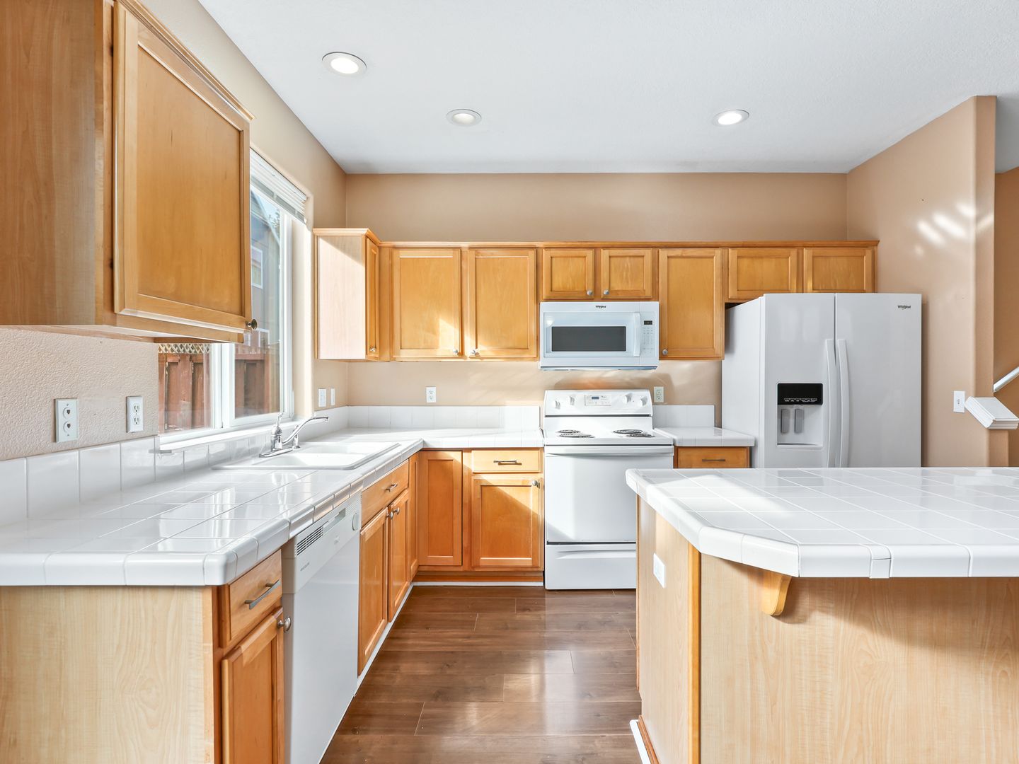 Prime location home - minutes to Costco, MAX train, NIKE, Tanasbourne shops/restaurants. Newer wood floors on main. Great room floor plan on main - kitchen/living/dining. Gas fireplace, gas heat ¢tral AC. Slider from dining room leads to fenced back area with patio & pavers. Kitchen includes refrigerator, dishwasher, electric range and microwave. Island offers additional storage. Upstairs has 3 bedrooms all with vaulted ceilings, laundry including washer & dryer and 2 bathrooms. Primary bath has double sinks & walk in closet. Newer paint in much of the home. 1 car attached garage with opener. 1 small pet negotiable with $50/month pet rent & additional deposit.