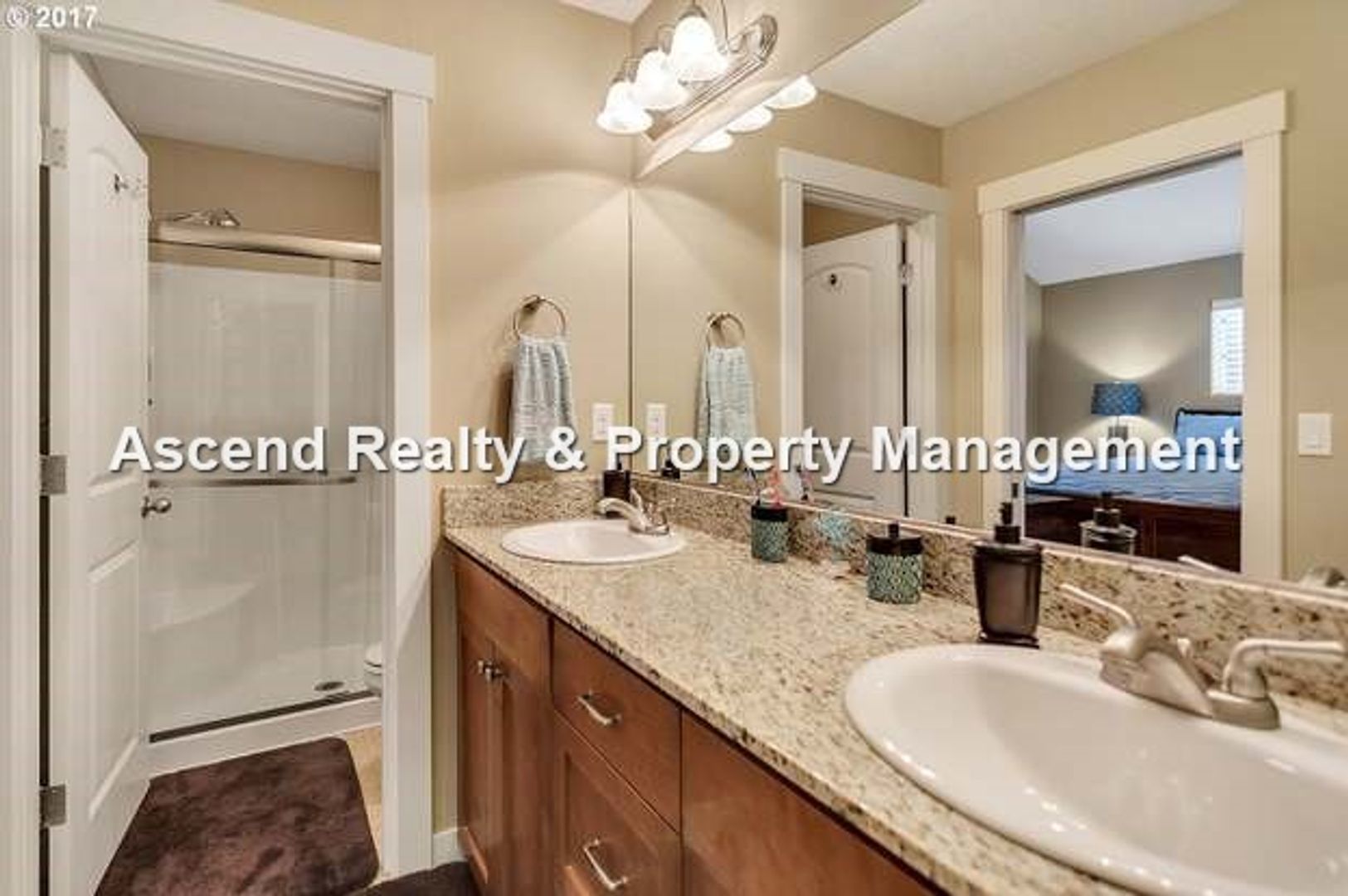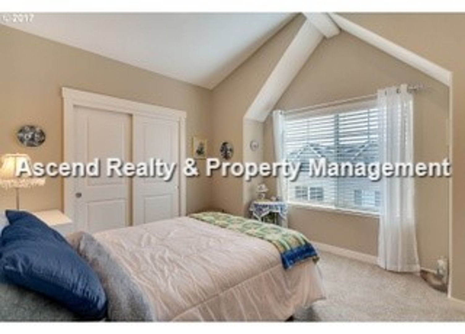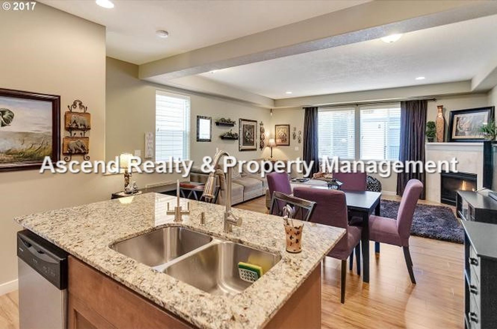 Beautiful townhome minutes to multiple Intel locations, Costco, Hillsboro airport & more. 3 bed or 2 & home office. 2 beds on top floor and 1 on ground floor. Lower bed has slider to back yard area. Stainless appliances - dishwasher, refrigerator, microwave & gas range. Kitchen also features granite counters & island. Open floor plan - living/dining/kitchen on 2nd level. Wood floors on ground & 2nd level. Laundry with washer & dryer located on 2nd level next to half bath. Vaulted ceilings. Primary bed has walk in closet. One car attached garage. Solar power & wired for electric car charging! Fenced back yard area. Neighborhood playground. Tenant responsible for all utilities (water/sewer, gas, electric, garbage & solar) and back yard care. NO smoking/vaping. 1 small (20 lbs or less) dog/cat with $50/month pet rent & $400 additional deposit. Brookwood/Brown/Hillsboro